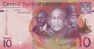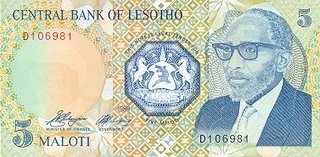 Bancnote pentru vanzare sau schimburi din Lesotho; numerele de culoare albastra denota pretul in lei noi iar numerele rosii reprezinta numarul de ordine in catalogul Pick. Toate bancnotele din aceasta pagina sunt necirculate. Click pe o imagine pentru a o mari.