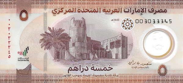Emiratele Arabe Unite 36 10.80 NECIRCULATA 5 Dirhams 2022-2024 (polimer)