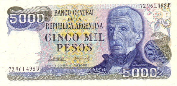Argentina 294 6.65 NECIRCULATA 5 Pesos (nedatata; circa 1974; Decreto-Ley 18.188) Argentina 295 6.20 NECIRCULATA 10 Pesos (nedatata; circa 1973-1976; Decreto-Ley 18.188) Argentina 296 5.45 NECIRCULATA 50 Pesos (nedatata; circa 1974; Decreto-Ley 18.188) Argentina 300 6.20 NECIRCULATA 10 Pesos (nedatata; circa 1976; fara clauza) Argentina 302 8.30 NECIRCULATA 100 Pesos (nedatata; circa 1976-1978; fara clauza) Argentina 303 4.55 NECIRCULATA 500 Pesos (nedatata; circa 1977-1982; fara clauza) Argentina 304 4.90 NECIRCULATA 1000 Pesos (nedatata; circa 1976-1983; fara clauza) Argentina 305 8.95 NECIRCULATA 5000 Pesos (nedatata; circa 1977-1983) Argentina 311 4.90 NECIRCULATA 1 Peso Argentino (nedatata; circa 1983-1984) Argentina 312 4.10 NECIRCULATA 5 Pesos Argentinos (nedatata; circa 1983-1984) Argentina 313 4.90 NECIRCULATA 10 Pesos Argentinos (nedatata; circa 1983-1984) Argentina 314 4.90 NECIRCULATA 50 Pesos Argentinos (nedatata; circa 1983-1985) Argentina 315 7.15 NECIRCULATA 100 Pesos Argentinos (nedatata; circa 1983-1985) Argentina 323 4.55 NECIRCULATA 1 Austral (nedatata; circa 1985-1989) Argentina 324 5.45 NECIRCULATA 5 Australes (nedatata; circa 1985-1989) Argentina 325 6.20 NECIRCULATA 10 Australes (nedatata; circa 1985-1989) Argentina 326 6.20 NECIRCULATA 50 Australes (nedatata; circa 1986-1989) Argentina 327 4.55 NECIRCULATA 100 Australes (nedatata; circa 1985-1990) Argentina 328 6.65 NECIRCULATA 500 Australes (nedatata; circa 1988-1990) Argentina 352 5.45 NECIRCULATA 2 Pesos (nedatata; circa 2002-2010; fara clauza de convertibilitate) Argentina 353 6.65 NECIRCULATA 5 Pesos (nedatata; circa 2002-2013; fara clauza de convertibilitate) Argentina 355 4.10 NECIRCULATA 20 Pesos (nedatata; circa 2002-2013; fara clauza de convertibilitate) Argentina 356 6.20 NECIRCULATA 50 Pesos (nedatata; circa 2003-2013; fara clauza de convertibilitate) Argentina 358 7.80 NECIRCULATA 100 Pesos (nedatata; circa 2012; comemorativa: Eva Peron) Argentina 359 4.55 NECIRCULATA 5 Pesos (nedatata; circa 2015) Argentina 360 6.65 NECIRCULATA 10 Pesos (nedatata; circa 2016) Argentina 361 4.10 NECIRCULATA 20 Pesos (nedatata; circa 2017) Argentina 362 4.90 NECIRCULATA 50 Pesos (nedatata; comemorativa: Falklands) Argentina 363 2.90 NECIRCULATA 50 Pesos (nedatata; circa 2018; condor)