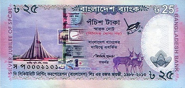 Bangladesh 6C 2.25 NECIRCULATA 2 Taka 1996-2010 Bangladesh 26 6.20 NECIRCULATA 10 Taka (nedatata) Bangladesh 32 6.65 NECIRCULATA 10 Taka 1996 (text comemorativ in filigran) Bangladesh 39 6.65 NECIRCULATA 10 Taka 2002-2005 (hartie) Bangladesh 47 2.90 NECIRCULATA 10 Taka 2008-2010 (hartie, mai scurta; scris inconjurat de alb) Bangladesh 52 1.15 NECIRCULATA 2 Taka 2011-2023 Bangladesh 53 4.55 NECIRCULATA 5 Taka 2011-2012 Bangladesh 53A 3.30 NECIRCULATA 5 Taka 2014-2015 (maro; margine alba; text pe revers in engleza) Bangladesh 54 2.90 NECIRCULATA 10 Taka 2012-2023 Bangladesh 55 6.65 NECIRCULATA 20 Taka 2012 (monocroma) Bangladesh 55A 6.65 NECIRCULATA 20 Taka 2012-2023 (policroma) Bangladesh 60 8.30 NECIRCULATA 40 Taka 2011 (comemorativa: 40 de ani de independenta) Bangladesh 62 8.30 NECIRCULATA 25 Taka 2013 (comemorativa: Imprimeria) Bangladesh 64A 1.65 NECIRCULATA 5 Taka 2016-2022 (violeta) Bangladesh 69 8.30 NECIRCULATA 50 Taka 2021 (comemorativa: Independenta; mov) Bangladesh 72 6.65 NECIRCULATA 50 Taka 2022 (comemorativa: Metroul) Bangladesh 73 8.30 NECIRCULATA 50 Taka 2023 (comemorativa: Tunel) *nou* Bangladesh 77 4.90 NECIRCULATA 20 Taka 2025 (cladire)