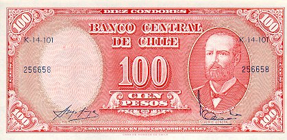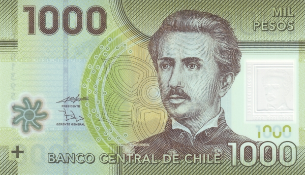 Chile 127 10.80 NECIRCULATA 10 centesimos overprint peste 100 Pesos (nedatata) Chile 161 9.80 NECIRCULATA 1000 Pesos 2010-2025 (polimer)
