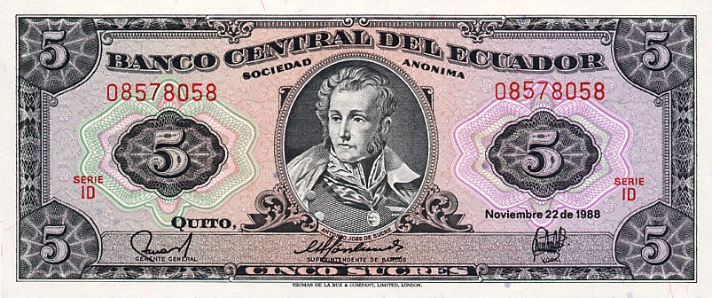 Ecuador 113 7.80 NECIRCULATA 5 Sucres 1979-1988