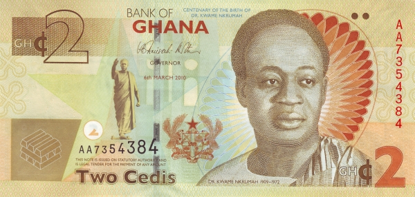Ghana 37 6.65 NECIRCULATA 1 Cedi 2007-2017 Ghana 37A 8.30 NECIRCULATA 2 Cedis 2010-2017 (comemorativa: 100 ani Kwame Nkrumah) Ghana 45 6.65 NECIRCULATA 1 Cedi 2019 (portrete mai mici)