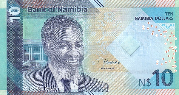 Namibia 4 8.95 NECIRCULATA 10 Dolari (nedatata; seria din dreapta rosie si ascendenta) Namibia 11 7.80 NECIRCULATA 10 Dolari 2012-2013 (cu ornament diamant) Namibia 16 6.65 NECIRCULATA 10 Dolari 2015-2025 (fara ornament diamant) Namibia 20 8.30 NECIRCULATA 10 Dolari 2025 (cladire Parlament langa portret)