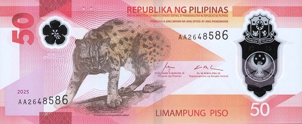 Filipine 103 6.65 NECIRCULATA 5 centavos (nedatata; ocupatia japoneza; anii 1940-1942) Filipine 155 10.80 NECIRCULATA 20 Piso (nedatata; Ang Bagong Lipunan; sigiliu '49 predominant alb) Filipine 162 8.95 NECIRCULATA 20 Piso (nedatata; Ang Bagong Lipunan; sigiliu '49 predominant negru) Filipine 182 9.35 NECIRCULATA 20 Piso 1998-2012 Filipine 206 5.45 NECIRCULATA 20 Piso 2010-2022 Filipine 207 9.35 NECIRCULATA 50 Piso 2010-2021 Filipine 224 10.80 NECIRCULATA 50 Piso 2020-2022 (logo: albastru/alb; cu semne pentru nevazatori) Filipine 230 4.10 NECIRCULATA 20 Piso 2022-2023 (logo: albastru/galben) Filipine 231A 8.95 NECIRCULATA 50 Piso 2023-2025 (logo: albastru/galben; cu semne pentru nevazatori) *nou* Filipine 237 10.80 NECIRCULATA 50 Piso 2025 (polimer)