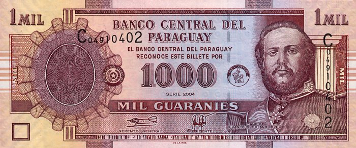 Paraguay 222 10.80 NECIRCULATA 1000 Guaranies 2004-2005 Paraguay 234 9.35 NECIRCULATA 5000 Guaranies 2011-2022 (polimer)
