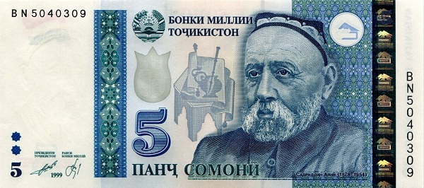 Tadjikistan 1 2.25 NECIRCULATA 1 Rubla 1994 Tadjikistan 2 2.25 NECIRCULATA 5 Ruble 1994 Tadjikistan 3 2.55 NECIRCULATA 10 Ruble 1994 Tadjikistan 4 2.90 NECIRCULATA 20 Ruble 1994 Tadjikistan 5 2.55 NECIRCULATA 50 Ruble 1994 Tadjikistan 6 1.95 NECIRCULATA 100 Ruble 1994 Tadjikistan 7 4.10 NECIRCULATA 200 Ruble 1994 Tadjikistan 10 1.95 NECIRCULATA 1 diram 1999 Tadjikistan 12 4.90 NECIRCULATA 20 diram 1999 Tadjikistan 13 6.65 NECIRCULATA 50 diram 1999 Tadjikistan 14A 2.90 NECIRCULATA 1 Somoni 1999 (glob verde in centru) Tadjikistan 20 7.15 NECIRCULATA 3 Somoni 2010 Tadjikistan 23 9.80 NECIRCULATA 5 Somoni 1999 (a doua versiune, cu banda holografica; tiparita in 2013)