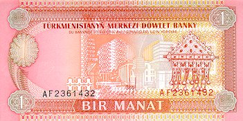 Turkmenistan 1 4.90 NECIRCULATA 1 Manat (nedatata; circa 1993) Turkmenistan 17 6.65 NECIRCULATA 50 Manat 2005 Turkmenistan 18 7.80 NECIRCULATA 100 Manat 2005 Turkmenistan 36 3.30 NECIRCULATA 1 Manat 2017 (comemorativa: Jocurile Asiatice)
