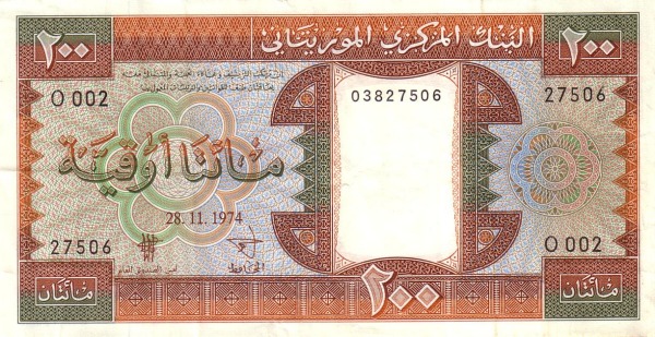 Bancnote pentru vanzare sau schimburi din Mauritania; numerele de culoare albastra denota pretul in lei noi iar numerele rosii reprezinta numarul de ordine in catalogul Pick. Toate bancnotele din aceasta pagina sunt necirculate. Click pe o imagine pentru a o mari.