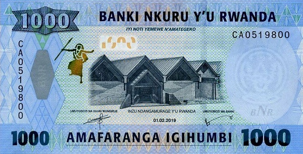Rwanda 39 9.35 NECIRCULATA 1000 Francs 2019 (text: BANKI NKURU; revers doar in engleza) Rwanda 42 7.15 NECIRCULATA 500 Francs 2019