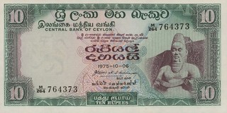 10 Rupees (5 apr) 1990 [#96] Issuer: Central Bank of Sri Lanka Signature titles aligned right 12 feb 2009 |