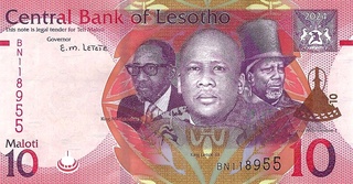 10 Maloti 2007 [#15e] Segmented foil security thread; one letter prefix 18 feb 2013 |