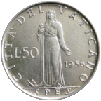 50 Lire 1955 [#54.1] Otel inoxidabil Pius XII; legend with AN 12 feb 2017 |